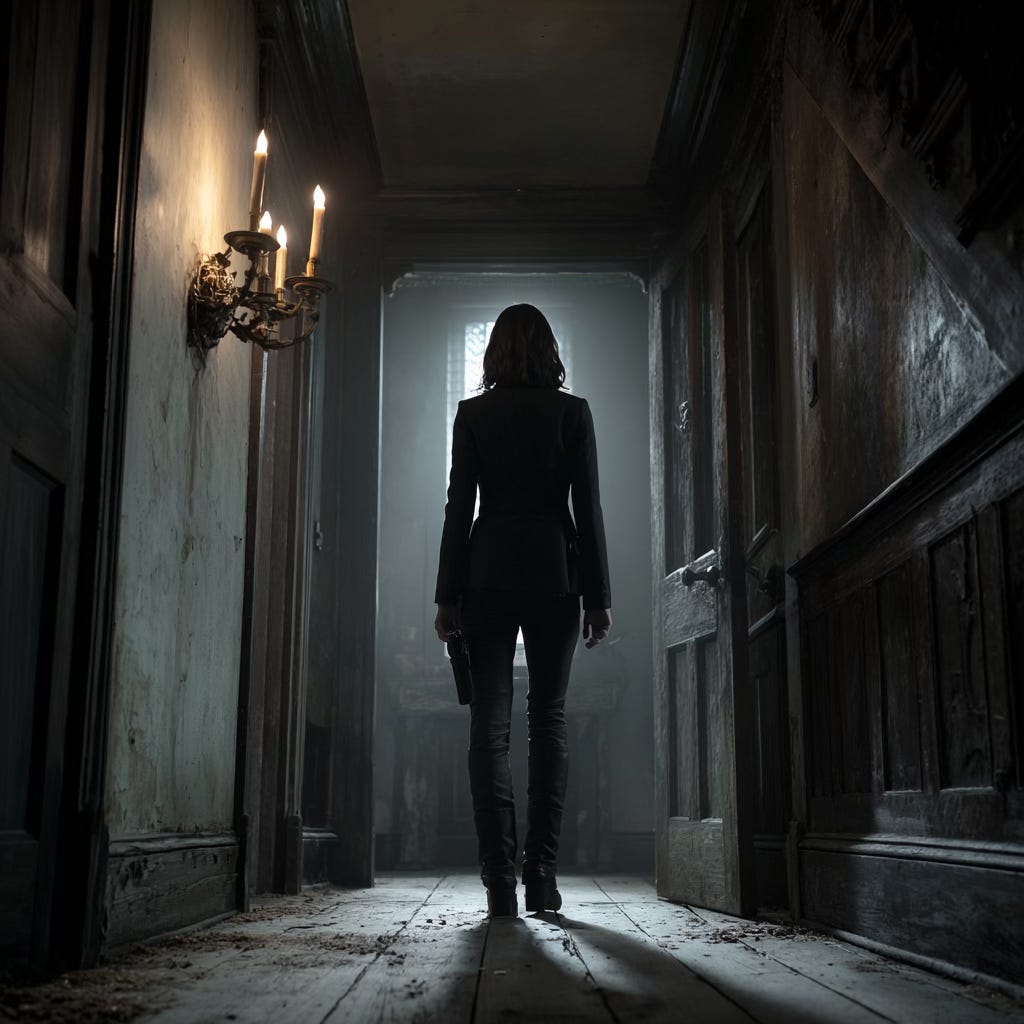 Special Agent Carlos walks towards the open doorway. She takes a deep deliberate breath which does nothing to still her beatbox heart. Her free right hand has strayed to her standard issue Glock 19 and unlatched the holster strap all by itself. What is the technique for entering rooms that shouldn’t exist?